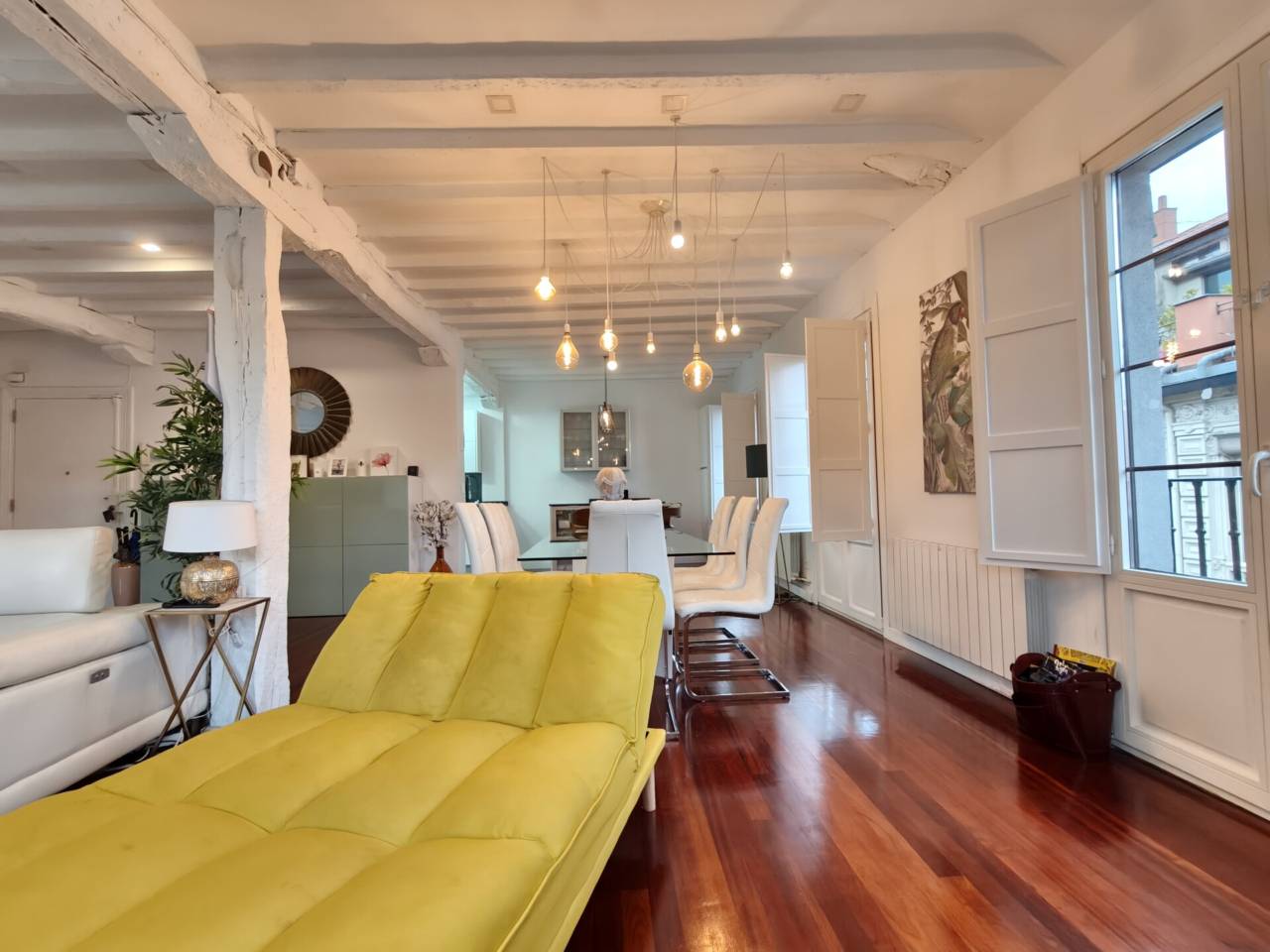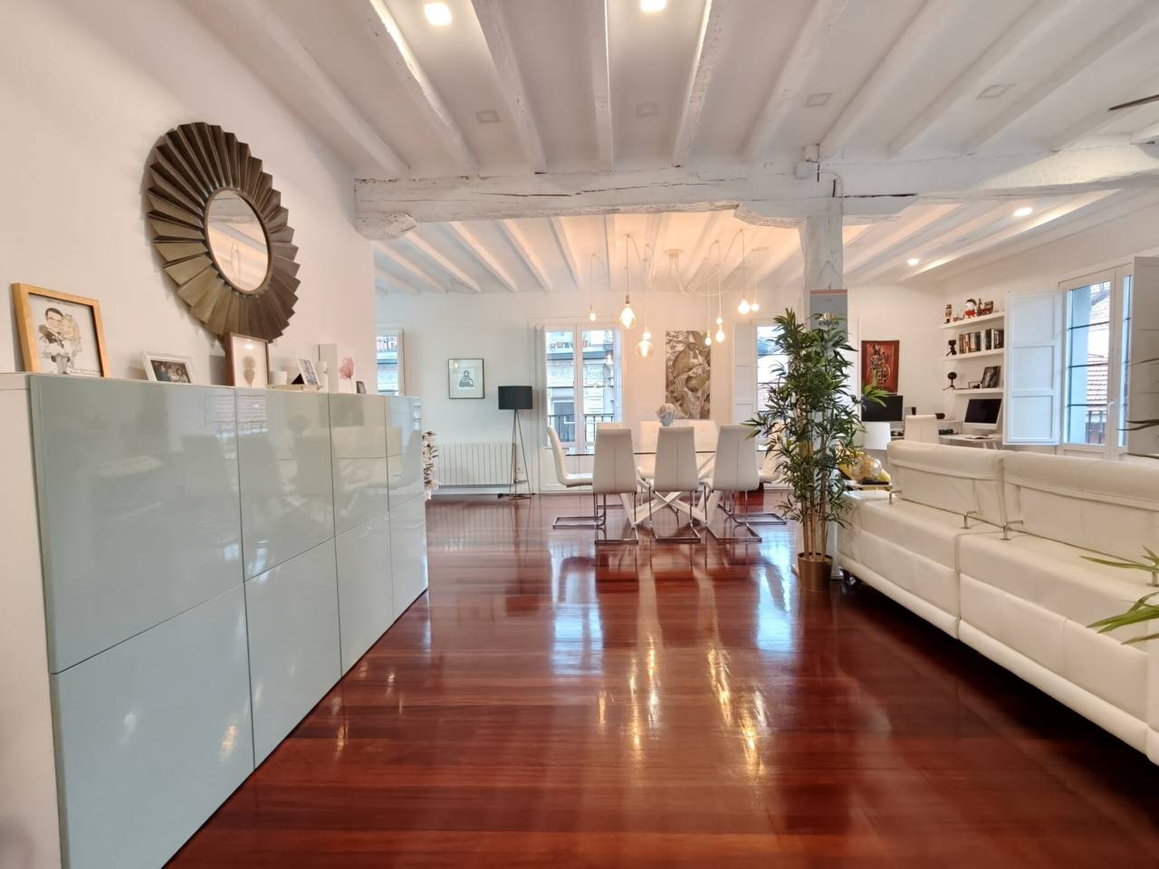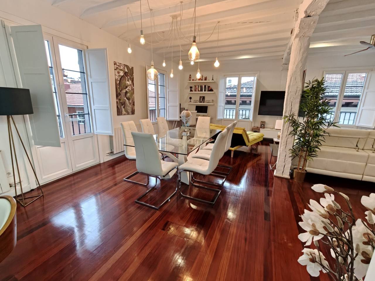 Exclusiva vivienda con encanto en Bidebarrieta – Casco Viejo de Bilbao Magnífica vivienda situada en la calle Bidebarrieta, una de las vías más emblemáticas y demandadas del Casco Viejo de Bilbao. Según catastro, la propiedad dispone de 140 m² de vivienda en la planta principal y 20 m² (útiles) adicionales en planta superior, comunicadas mediante una elegante escalera de caracol. Se trata de una vivienda exterior, completamente reformada y cuidada hasta el último detalle. La zona de día ofrece un amplio y excepcionalmente luminoso salón-comedor, con salida a ocho magníficos balcones, desde los que se disfruta de unas vistas privilegiadas al animado Casco Viejo. La cocina con isla, semi integrada en el salón, combina funcionalidad y diseño, manteniendo independencia visual sin perder conexión con el espacio principal. El dormitorio principal cuenta con baño en suite, vestidor y acceso a un balcón privado. A través de la estilizada escalera de caracol se accede al segundo dormitorio, que dispone igualmente de baño completo, ofreciendo un espacio íntimo y un diseño singular. En toda la vivienda destacan las vigas de madera vistas, perfectamente conservadas, que aportan carácter, calidez y autenticidad. La propiedad dispone de ventanas de PVC, calefacción de gas natural y excelentes calidades, resultado de una reforma integral. El edificio cuenta con la fachada recientemente rehabilitada y no dispone de ascensor. Una vivienda lista para entrar a vivir, ideal para quienes buscan encanto, amplitud y una ubicación inmejorable en pleno corazón de Bilbao. Para más información puedes encontrarnos en cualquiera de nuestras oficinas en Bilbao, en Indautxu y Ensanche, con un equipo humano de gran formación y experiencia en el sector. Contamos con una amplísima cartera de más de 3.000 inmuebles en Bizkaia y este de Cantabria, vivienda nueva y de segundo uso, oficinas, locales comerciales, naves… Oficina Indautxu: C/ Pérez Galdós 2 Oficina Ensanche: C/Heros 9 O en inmo@bertegi.es