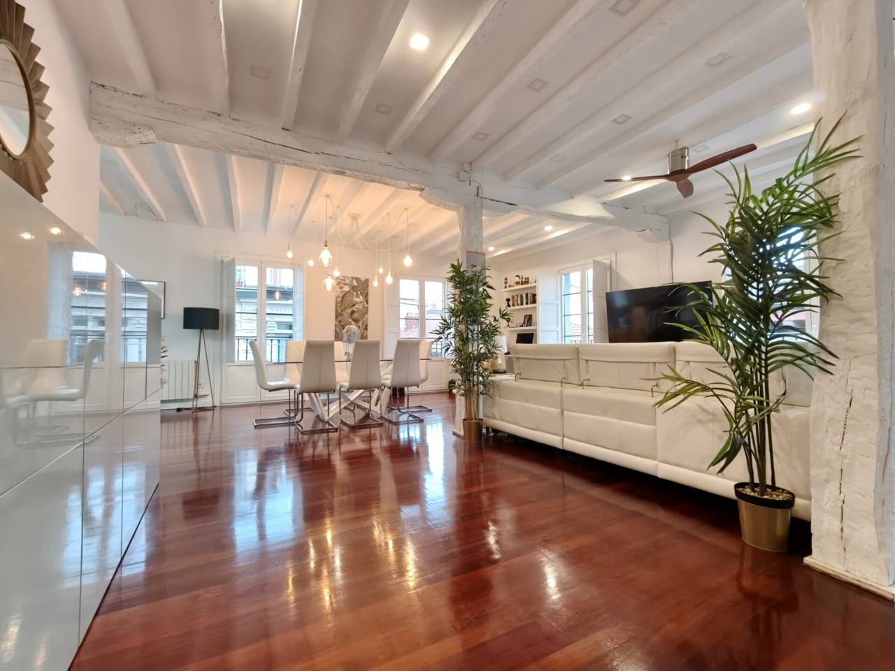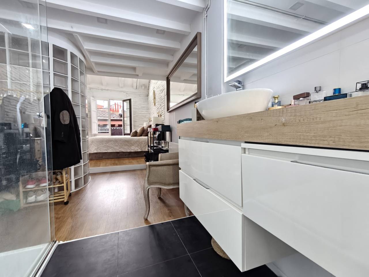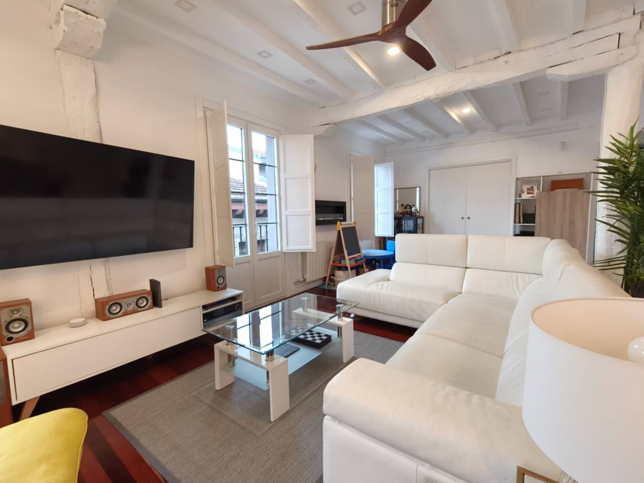 Exclusiva vivienda con encanto en Bidebarrieta – Casco Viejo de Bilbao Magnífica vivienda situada en la calle Bidebarrieta, una de las vías más emblemáticas y demandadas del Casco Viejo de Bilbao. Según catastro, la propiedad dispone de 140 m² de vivienda en la planta principal y 20 m² (útiles) adicionales en planta superior, comunicadas mediante una elegante escalera de caracol. Se trata de una vivienda exterior, completamente reformada y cuidada hasta el último detalle. La zona de día ofrece un amplio y excepcionalmente luminoso salón-comedor, con salida a ocho magníficos balcones, desde los que se disfruta de unas vistas privilegiadas al animado Casco Viejo. La cocina con isla, semi integrada en el salón, combina funcionalidad y diseño, manteniendo independencia visual sin perder conexión con el espacio principal. El dormitorio principal cuenta con baño en suite, vestidor y acceso a un balcón privado. A través de la estilizada escalera de caracol se accede al segundo dormitorio, que dispone igualmente de baño completo, ofreciendo un espacio íntimo y un diseño singular. En toda la vivienda destacan las vigas de madera vistas, perfectamente conservadas, que aportan carácter, calidez y autenticidad. La propiedad dispone de ventanas de PVC, calefacción de gas natural y excelentes calidades, resultado de una reforma integral. El edificio cuenta con la fachada recientemente rehabilitada y no dispone de ascensor. Una vivienda lista para entrar a vivir, ideal para quienes buscan encanto, amplitud y una ubicación inmejorable en pleno corazón de Bilbao. Para más información puedes encontrarnos en cualquiera de nuestras oficinas en Bilbao, en Indautxu y Ensanche, con un equipo humano de gran formación y experiencia en el sector. Contamos con una amplísima cartera de más de 3.000 inmuebles en Bizkaia y este de Cantabria, vivienda nueva y de segundo uso, oficinas, locales comerciales, naves… Oficina Indautxu: C/ Pérez Galdós 2 Oficina Ensanche: C/Heros 9 O en inmo@bertegi.es
